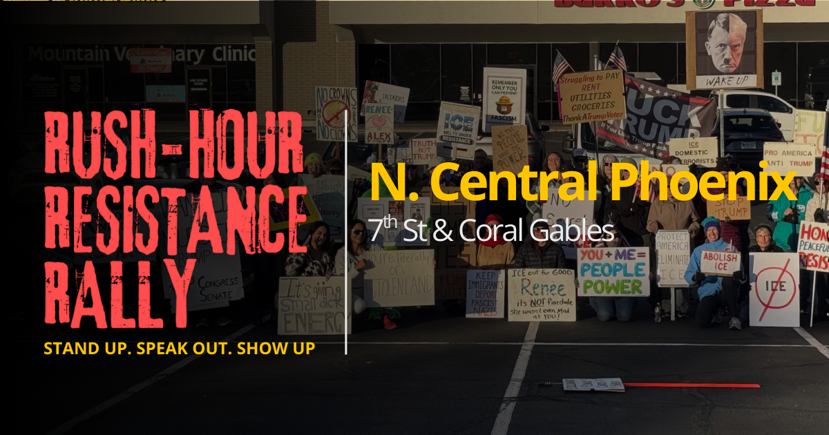 GATHERING POINT: We gather on the sidewalk along 7th Street, with the primary meeting spot near Moon Valley Cleaners. Look for the signs. Can’t miss us!